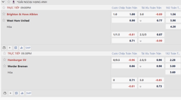 | Kèo | Thắng đủ | Thắng nửa | Hòa | Thua đủ | Thua nửa | | Điểm | +2 điểm | +1 điểm | +0 điểm | -2 điểm | -1 điểm |